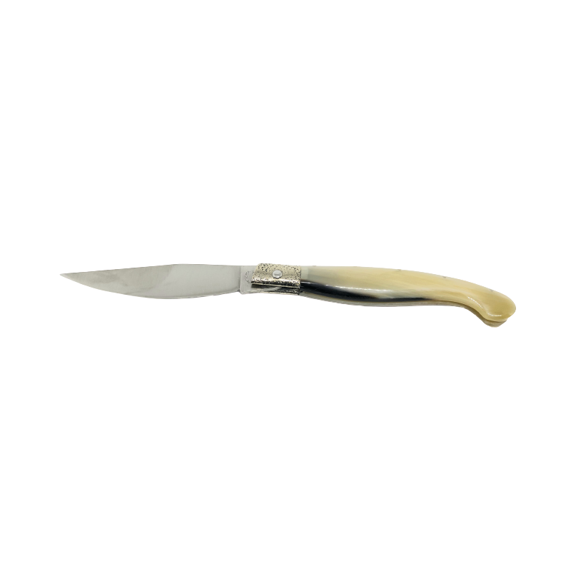 materiale: manico in corno di bue, lama acciaio,rifiniture in ottone